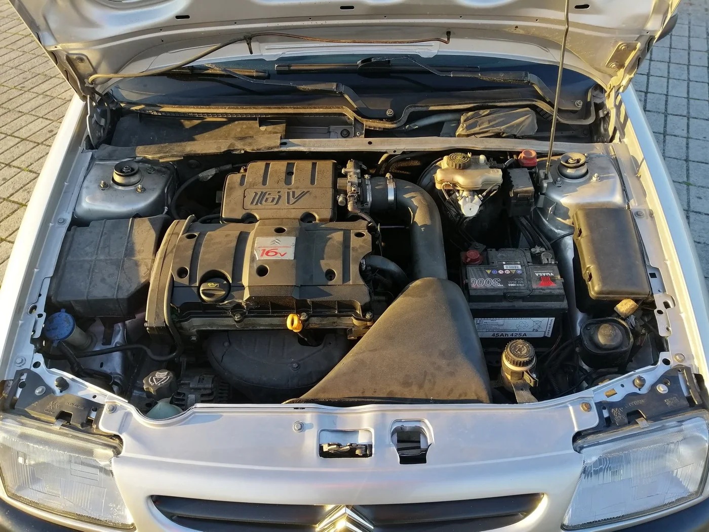 Citroën Saxo Cup, o mítico pocket rocket das estradas, com a designação Cup exclusiva do mercado português, equipado com o motor TU5 de 1,6L, duas árvores de cames à cabeça e 16 válvulas que desenvolve uma potência de 120cv às 6600rpm e 145Nm de binário às 5200rpm, para um peso de 935kg. A suspensão era mais baixa, e tinha umas barras estabilizadoras na frente e traseira mais grossas, para uma melhor adrência, além de contar com o poder de travagem melhorado com discos nas quatro rodas.