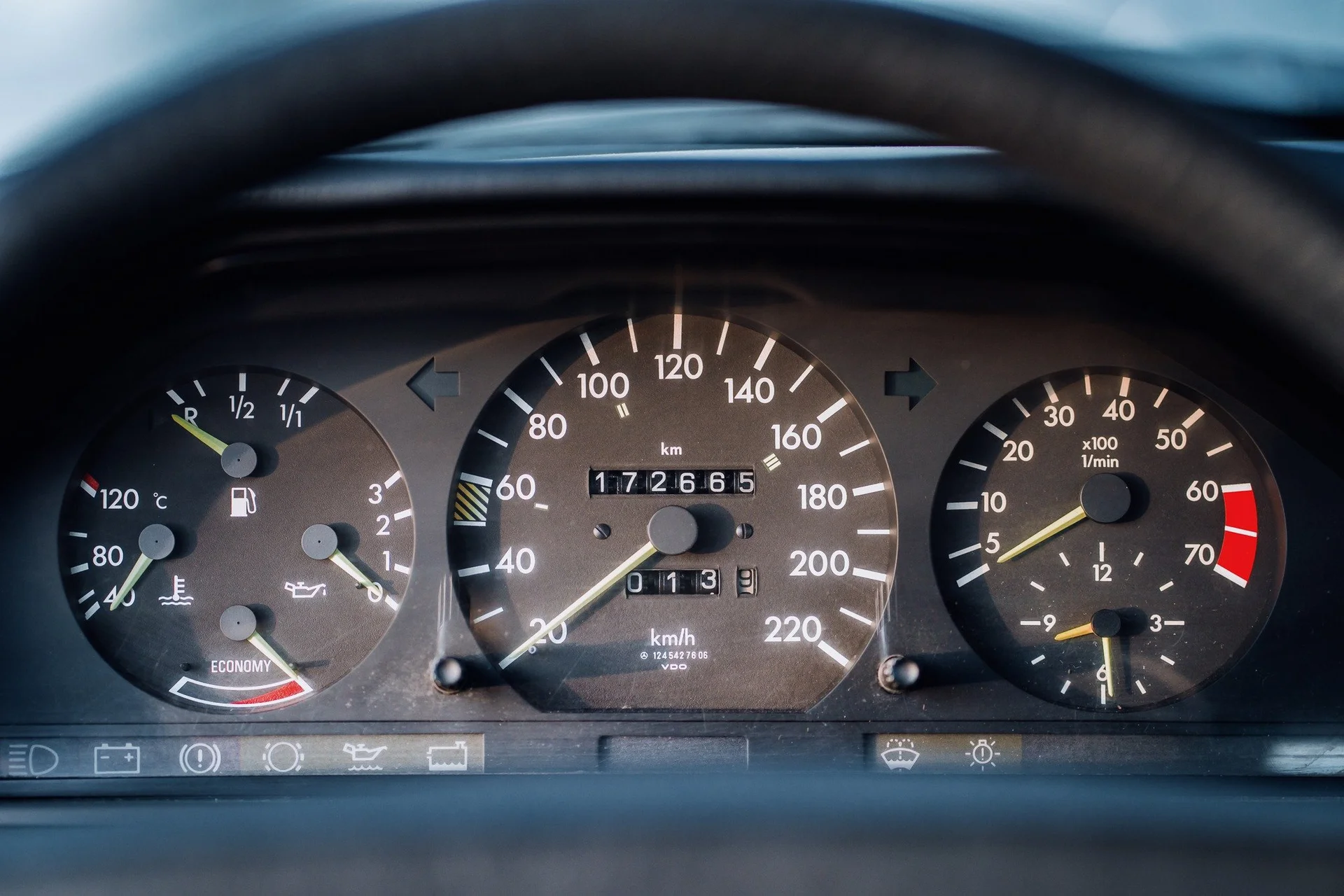 Mercedes-Benz W124, o antecessor do que é hoje o Classe E, aqui na versão 230E, equipado com o motor de quatro cilindros em linha M102 E23, de 2,3L de cilindarda e injecção Bosch KE-Jetronic, capaz de produzir 136cv às 5100rpm e 205Nm às 3500rpm, acoplado a uma caixa manual de cinco velocidades, que envia a potência para as rodas traseiras.